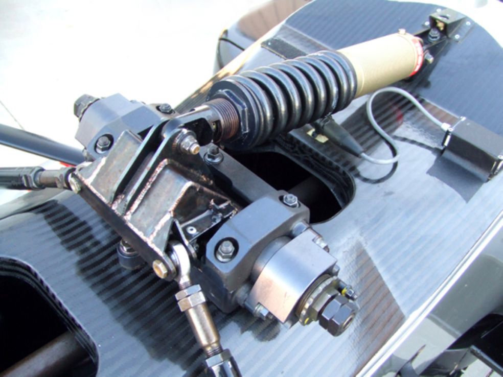 A common misunderstanding is that a monoshock set up rigidly mounts a common bellcrank to the chassis, this would obviously cancel any roll movement . Some degree of compliance is designed into the set up to provide the roll control.